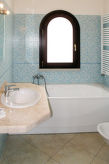 Vacker semesteranläggning "Vista Blu", 30 meter över havsytan, byggnadsår 2009. 60 hus i residenset. 2.5 km från centrumet av Alghero, 33 km från centrumet av Sassari, upphöjt läge, 4 km från havet, 4 km från stranden, i det gröna. För gemensamt bruk: vacker, välskött trädgård (inhägnad) med gräsmatta och planteringar, pool (12 x 8 m, 70 - 150 cm djup, tillgång säsongsbunden: 03.Apr. - 28.Okt.). Utedusch, terrass. I anläggningen: reception, bar, cykeluthyrning. Tillfart (naturväg). Parkering vid huset. Stormarknad 3 km, färja "Porto Torres" 39 km, sandstrand "Lido di Alghero" 3.5 km. Golfbana (9 hål) 11 km. På förfrågan: flygplatstransfer till semesterobjektet. Notera: Bilden är bara ett exempel på ett hus.Interior
