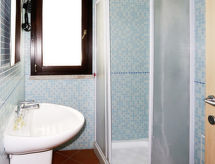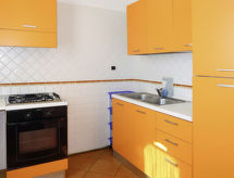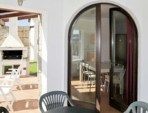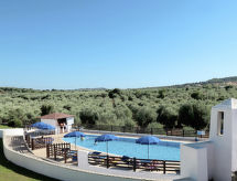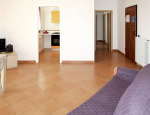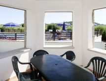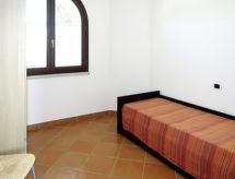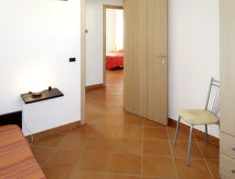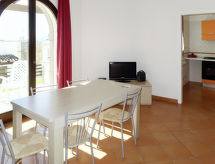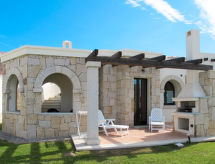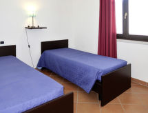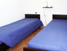 "Vista Blu", 4-rums-radhus 115 m2. Modernt inrett: vardags-/sovrum med 1 bäddsoffa för 2 personer och öppen spis (endast för dekoration), matbord och TV. Utgång till terrassen. 1 rum med 1 fransk säng (160 cm). 1 rum med 2 sängar (80 cm). 1 rum med 2 sovmöjligheter (80 cm). Öppet kök (ugn, 4 gasflammor, brödrost, frys). Badkar/toalett, dusch/toalett. Eluppvärmning, luftkonditionering. Terrass, gräsmatta. Terrassmöbler, utegrill, förråd. Till förfogande: tvättmaskin, strykjärn, hög barnstol, barnsäng (extra). Max 1 husdjur/hund tillåtet.- Kännetecken för boendet