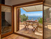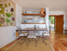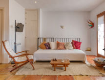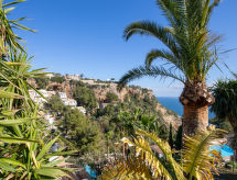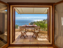 "Vista Halcon", 3-rums-radhus 120 m2 med 3 våningar. Vackert och stiligt inrett: vardags-/matrum med digital-TV. Utgång till terrassen. Öppet kök (3 kokplattor - glaskeramikhäll, mikrovågsugn, elektrisk kaffemaskin). Dusch/toalett. Ingen uppvärmningsmöjlighet. Nedre våning: 1 rum med 1 fransk säng (160 cm, längd 190 cm). Genomgångsrum med 1 säng (90 cm, längd 200 cm). Dusch/toalett, sep. Toalett. Stor terrass. Terrassmöbler. Härlig utsikt på havet och dalen. Till förfogande: tvättmaskin, strykjärn, hårtork. Internet (Trådlös LAN [WLAN] , gratis). Notera: TV bara ES. VT-487019-A- Utrustning