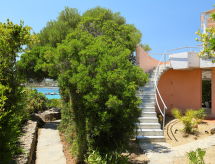 "Vista Mare 1 (GOA611)", 3-rums-lägenhet 60 m2 på 1. våningen. Sluttande tak, enkelt inredd: vardags-/matrum med sat-TV och luftkonditionering. Utgång till terrassen. 1 dubbelrum. 1 rum med 3 sängar. Kokvrå (4 kokplattor, frys). Dusch/bidé/toalett. Vattenberedare (50 liter). Terrass. Terrassmöbler. Utsikt på havet. Till förfogande: tvättmaskin. 1 husdjur/hund tillåtet. IUN:Q3444- Utrustning