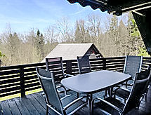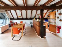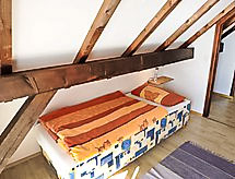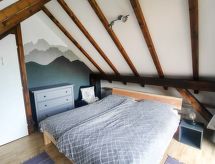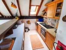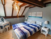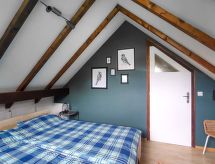 4-rums-hus 105 m2 med 2 våningar, på bottenvåningen. Stort vardags-/matrum 50 m2 med sat-TV och radio. Utgång till balkongen. 1 dubbelrum. Kokvrå (ugn, diskmaskin, mikrovågsugn, elektrisk kaffemaskin). Badkar/dusch/toalett. Övre våning: 1 rum med snedtak med 1 säng och 1 dubbelsäng. 1 dubbelrum med snedtak. 2 balkonger, gräsmatta. Balkongmöbler, utegrill (flyttbar). Till förfogande: hög barnstol. Internet (Trådlös LAN [WLAN] , gratis).- Aktiviteter i närheten