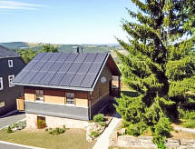 Trähus "Weitsicht". I orten 2 km från centrumet av Oberweissbach, lugnt, soligt läge i en sluttning, i det gröna. För privat bruk: liten trädgård 25 m2 med gräsmatta. Till förfogande: cyklar (3) (extra). Parkering (för 2 bilar, täckt) vid huset. Affär 2 km, livsmedelsaffär 2 km, stormarknad 2 km, restaurang 100 m, busshållplats 2 km, järnvägsstation "Bergbahn" 300 m, utomhusbad 2 km, simhall 10 km. Ridstall 3 km, vandringsleder från huset 100 m, skidlift 3 km, skidskola 5 km, skidspår 3 km, lekplats 150 m. Notera: fordon rekommenderas.Interior