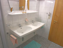 "Apart 106 Wiesenhof", 3-rums-lägenhet 65 m2 på 3. våningen. Modernt och mysigt inredd: 1 dubbelrum med handfat och dusch. 1 rum med 1 säng och 1 dubbelsäng. Kök (4 kokplattor, ugn, diskmaskin, brödrost, vattenkokare, elektrisk kaffemaskin) med matvrå och sat-TV (flatscreen TV), radio. Utgång till balkongen, mot söder. Dusch, sep. Toalett, dubbelt handfat. Uppvärmning. Balkongmöbler. Till förfogande: kassaskåp, hårtork. Internet (Trådlös LAN [WLAN] ). Notera: rökfri lägenhet. Ingen hiss.- Utrustning