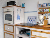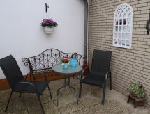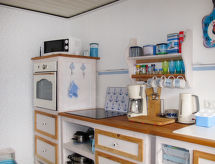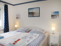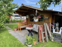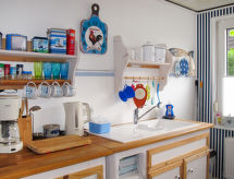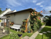 2-rums-bungalow 70 m2, på bottenvåningen. Objekt passande för 4 vuxna + 1 barn. Ljus, fullständigt renoverad år 2019, vackert och mysigt inredd: vardags-/sovrum med 1 bäddsoffa för 2 personer (140 cm, längd 200 cm), sat-TV och flatscreen TV. 1 rum med 1 dubbelsäng. Kök (ugn, diskmaskin, 4 kokplattor - glaskeramikhäll, brödrost, vattenkokare, mikrovågsugn, frys, elektrisk kaffemaskin) med matbord. Dusch/toalett. Gasuppvärmning. Liten terrass, trädgårdssittplats. Terrassmöbler. Utsikt på trädgården. Till förfogande: tvättmaskin, strykjärn, hög barnstol, barnsäng för barn under 2 år. Internet (Trådlös LAN [WLAN] , gratis). Notera: rökfritt hus. Brandvarnare.- Utrustning