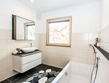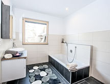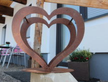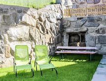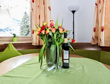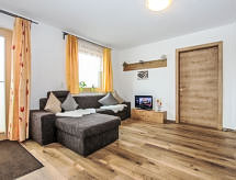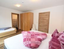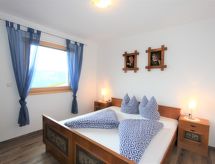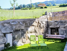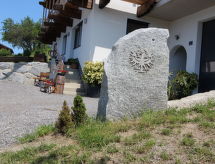3-rums-lägenhet 90 m2, på bottenvåningen. Rymlig, komfortabelt och smakfullt inredd: ingång. 1 dubbelrum. 1 stort rum med 1 säng, 1 dubbelsäng, 1 utdragbar säng och badkar/dusch. Utgång till trädgården. Stort kombinerat kök och vardagsrum (ugn, diskmaskin, 4 kokplattor - glaskeramikhäll) med 1 bäddsoffa för 2 personer, matvrå och sat-TV (flatscreen TV). Sep. Toalett. Trädgårdssittplats, trädgård. Terrassmöbler, utegrill. Härlig panoramautsikt på bergen, dalen och landskapet. Till förfogande: Internet (Trådlös LAN [WLAN] ). Notera: lämpligt för barnfamiljer. Rökfri lägenhet. Privat entré, privat entré, brandvarnare.- Kännetecken för boendet