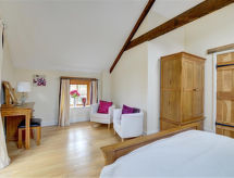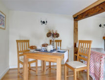 2-rums-stuga med 2 våningar. Rymlig och ljus, komfortabelt och smakfullt: öppet vardagsrum med TV, flatscreen TV, stereoanläggning, DVD och vedugn. Öppet kök (4 kokplattor, ugn, diskmaskin, mikrovågsugn, frys) med matbord. Sep. Toalett. Övre våning: 1 dubbelrum med 1 dubbelsäng. Utgång till balkongen. Badkar/dusch/toalett. Uppvärmning. Terrassmöbler, utegrill. Vacker utsikt på landskapet. Till förfogande: Internet (Trådlös LAN [WLAN] , gratis). Notera: rökfritt hus. 1 husdjur/hund tillåtet.- Kännetecken för boendet