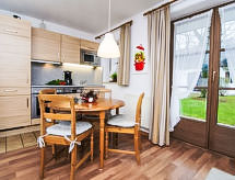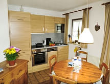 "Wohnung 5 (Am Sonneneck)", 2-rums-lägenhet 50 m2, på bottenvåningen. Vackert och mysigt inredd: vardags-/matrum med 1 bäddsoffa för 2 personer (160 cm, längd 200 cm), kabel-TV (flatscreen TV). Utgång till terrassen. 1 dubbelrum. Utgång till terrassen. Kokvrå (ugn, diskmaskin, 4 kokplattor - glaskeramikhäll, mikrovågsugn, elektrisk kaffemaskin). Dusch/toalett. Terrassmöbler. Till förfogande: hög barnstol, barnsäng, hårtork. Internet (Trådlös LAN [WLAN] , gratis). Notera: rökfri lägenhet. Max 1 husdjur/hund tillåtet. Brandvarnare.- Utrustning