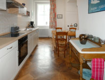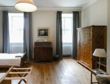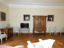 2-rums-lägenhet 186 m2 på 1. våningen. Antikt och stiligt inredd: stor salong med TV, stereoanläggning och DVD. 1 rum med 1 dubbelsäng. Kök (ugn, diskmaskin, elektrisk kaffemaskin) med matbord. Badkar/dusch/toalett. Vacker utsikt på trädgården. Till förfogande: Internet (Trådlös LAN [WLAN] , gratis). Notera: rökfri lägenhet.- Kännetecken för boendet