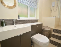 4-rums-stuga med 2 våningar. Rymlig och ljus, komfortabelt och smakfullt: öppet vardagsrum med TV, flatscreen TV och DVD. Öppet kök (4 kokplattor, ugn, mikrovågsugn, frys) med matbord. Sep. Toalett. Uppvärmning. Övre våning: 1 dubbelrum med 1 dubbelsäng. 1 dubbelrum med 1 dubbelsäng. 1 rum med 1 säng. Dusch/toalett. Uppvärmning. Terrassmöbler. Vacker utsikt på floden. Till förfogande: tvättmaskin, torktumlare. Internet (Trådlös LAN [WLAN] , gratis). Notera: rökfritt hus.- Utrustning