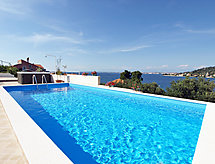 Parhus "Zdenko 1". 1 km från centrumet av Kali, soligt läge i en sluttning, 110 m från havet, 110 m från stranden. För gemensamt bruk: tomt 1'850 m2, pool kantig (9 x 3 m, 29 m2, 135 cm djup, tillgång säsongsbunden: 01.Maj. - 21.Sep.) med innertrappor. Utedusch, bubbelbad, terrass, utegrill. I huset: internetanslutning. Parkering vid huset på tomten. Affär, restaurang 850 m, strand vid klippor, betongbelagd strand 110 m. Notera: objektnummer HR4210.130,132 är beläget på samma tomt. Bottenvåningen är avstängd och används inte. Huset ligger nedanför Kali-Preko vägen. Ungdomsgrupper ej tillåtet. För gemensamt bruk: Bubbelbad (extra).Interior