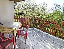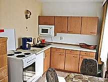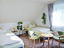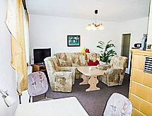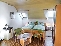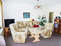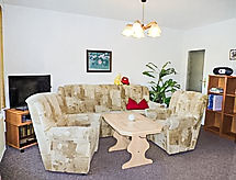 4-rums-ena hälften av ett parhus 65 m2 med 2 våningar, på bottenvåningen. Vardags-/matrum med kabel-TV och radio. Öppet kök (ugn, mikrovågsugn, elektrisk kaffemaskin). Dusch/toalett. Övre våning: 1 rum med snedtak med 2 sängar. 1 dubbelrum med snedtak. Utgång till balkongen. Eluppvärmning. Balkong, terrass. Terrassmöbler. Till förfogande: Internet (Trådlös LAN [WLAN] , gratis). Notera: rökfritt hus. Max 1 husdjur/hund tillåtet. Privat entré, privat entré. Tillträde från balkongen till inglasad solterrass. Hall med sittplatser på bottenvåningen. Vardagsrum på översta våningen med sluttande tak. Tillträde till rummet med 2 bäddsoffor genom dubbelrummet. Elelement i badrummet. Separat ingång.- Utrustning