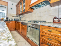 6-rums-hus 137 m2 med 2 våningar. Vardags-/matrum 38 m2 med sat-TV (flatscreen TV), luftkonditionering. Utgång till terrassen. 1 rum med 1 fransk säng (160 cm, längd 200 cm). 1 rum med 2 sängar (90 cm, längd 200 cm). Öppet kök (ugn, diskmaskin, 4 gasflammor, brödrost, frys, elektrisk kaffemaskin). Dusch/toalett. Övre våning: (utetrappa) vardags-/matrum med luftkonditionering. 1 rum med snedtak, takhöjd 150 - 220 cm med 1 fransk säng (160 cm, längd 200 cm). 1 rum med snedtak, takhöjd 150 - 220 cm med 2 sängar (90 cm, längd 200 cm). Öppet kök (1 kokplatta, ugn, 3 gasflammor, frys). Dusch/toalett. Terrass 20 m2, täckt. Terrassmöbler. Utsikt på landskapet. Till förfogande: Internet (Trådlös LAN [WLAN] , gratis). 2 husdjur/hundar tillåtna.- Utrustning
