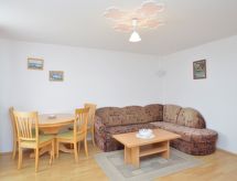 "Zwei Rosen (PUL552)", 2-rums-lägenhet 44 m2 på 2. våningen. Vardags-/matrum med 1 bäddsoffa för 2 personer, sat-TV, radio, DVD och luftkonditionering. Utgång till balkongen. 1 rum med 1 dubbelsäng. Öppet kök (2 kokplattor, mikrovågsugn, elektrisk kaffemaskin). Dusch/toalett. Luftkonditionering, varmluftsuppvärmning (extra). Balkong 4 m2. Balkongmöbler. Till förfogande: kassaskåp. Internet (Trådlös LAN [WLAN] , extra). Notera: rökfritt hus.- Utrustning