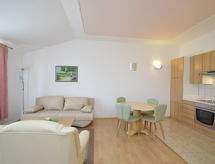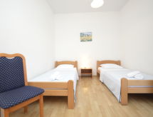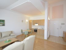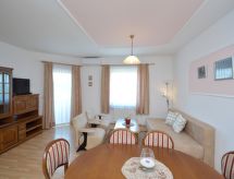 Flerfamiljshus "Zwei Rosen". 2 km från centrumet av Fažana, 4 km från centrumet av Pula, 1 km från havet, 1 km från stranden. För gemensamt bruk: tomt 800 m2 (inhägnad) med gräsmatta och träd, pool oregelbundet formad (7 x 3 m, 90 - 180 cm djup, tillgång säsongsbunden: 14.Maj. - 17.Sep.). Utedusch, terrass, trädgårdsmöbler, utegrill. I huset: internetanslutning, cykeluthyrning. Parkering på tomten. Affär 200 m, stormarknad 1.5 km, restaurang 1 km, grusstrand 1 km. Marina 7 km.Interior