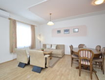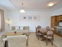 "Zwei Rosen (PUL553)", 3-rums-lägenhet 62 m2. Vardags-/matrum med 1 bäddsoffa för 2 personer (160 cm, längd 200 cm), sat-TV, radio, DVD och luftkonditionering. Utgång till balkongen. 1 rum med 1 dubbelsäng. Utgång till balkongen. 1 rum med 2 sängar. Utgång till balkongen. Öppet kök (4 kokplattor, ugn, mikrovågsugn, elektrisk kaffemaskin). Badkar/toalett. Luftkonditionering, varmluftsuppvärmning (extra). Terrass 4 m2. Terrassmöbler. Till förfogande: kassaskåp. Internet (Trådlös LAN [WLAN] , extra). Notera: rökfritt hus. Privat entré, privat entré. Hyresobjektet är en boendetyp.- Utrustning