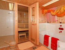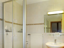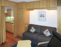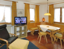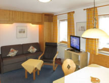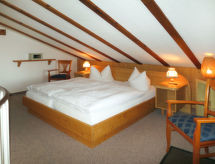 "Zwerchenberg", 2-rums-lägenhet 43 m2 med 2 våningar. Objekt passande för 2 vuxna + 2 barn. Mysigt och med mycket trä inredd: vardags-/sovrum med 1 bäddsoffa för 2 personer, matvrå och kabel-TV. Litet kök (ugn, diskmaskin, 4 kokplattor - glaskeramikhäll, brödrost, vattenkokare, elektrisk kaffemaskin). Övre våning: genomgångsrum med 1 dubbelsäng och dusch/toalett. Utgång till balkongen. Oljeuppvärmning. Heltäckningsmatta. Balkong. Balkongmöbler. Till förfogande: kassaskåp, hög barnstol, barnsäng. Notera: rökfri lägenhet. Brandvarnare, brandsläckare.- Utrustning