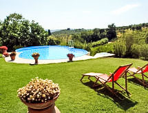 Eski mülk "La Tenuta", 19. yüzyıl den/dan, yenilenmiş, çevrili kırlık alan ve bağlar. 15 km ın merkezinde Florenz, yörenin dışında. 1 km in merkezinde Ginestra Fiorentina, yalnız, güneşli yer tepede, yeşillikler içinde. Kullanım için: arsa 40 ha, Park, güzel bahçe ile çim ve bitki, yüzme havuz (5 11 m, Sezonluk kullanılabilirlik: 08.May. - 02.Oct.). Bahçe mobilyası. Tek kişilik kullanım için: oturak/oturma yeri, bahçe mobilyası, mangal. Evde: TV ile Wireless LAN, çamaşır makinesi (ekstra) (birlikte kullanım için). Otopark. Marketler 1 km, Cafe 500 m, tren istasyonu "Lastra a Signa" 10 km. Tenis 6 km, binicilik 3 km. Gezilecek yerler: Pisa 55 km, Montecatini Terme 40 km, Siena 55 km, airport Firenze 15 km.Interior