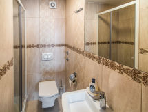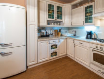3 odalı dupleksin yarısı 150 m2 üstünde 4 kat, güney bölgesi. Güzel ve zevkli dayalı döşeli: yemek odası. Amerikan mutfak (fırın, bulaşık makinesi, 4 cam seramik taban, derin dondurucu). Üst kat: oturma odası 25 m2 ile 1 divan (90 cm, uzunluk 190 cm), Uydu-TV (LCD ekran), klima. Ayrı WC. 2. kat: 1 oda ile 1 french bed (180 cm, uzunluk 200 cm), duş/WC. çatı katı: 1 çatı tavan oda, tavan yüsekliği 130 - 270 cm ile 1 french bed (160 cm, uzunluk 200 cm), duş/WC. Terasa çıkışlı. Teras 9 m2, kapalı. Teras mobilyası. Hizmetinize sunulan: Internet (Wireless LAN, ücretsiz). Duşun altındaki günlük temizlik çok az zaman alır. Duş hazır.- tesisler
