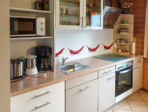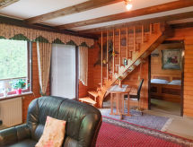 3 odalı daire 75 m2, üst katta. Rahat ve bol odunlu dayalı döşeli: oturma odası 35 m2 ile açık şömine, Uydu-TV (LCD ekran), CD, müzik seti ve DVD. Balkona çıkışlı. 1 oda 13 m2 ile 1 ikili yatak (180 cm, uzunluk 200 cm), 1 katlanabilir yatak (90 cm, uzunluk 190 cm). 1 oda 9 m2 ile 2 adet yatak (90 cm, uzunluk 190 cm). Amerikan mutfak 9 m2 (fırın, 4 cam seramik taban, mikro dalga fırın, kahve makinesi) ile yemek köşesi. Duş/WC. Gazlı ısıtma. Büyük balkon 20 m2. Balkon mobilyası. Güzel, Dağ manzaralı. Hizmetinize sunulan: odun (ekstra). Dikkat: sigara içilmez daireler. Maximum 1 pet/ dog allowed. Özel giriş, özel giriş, duman dedektörü, yangın söndürücü. Tatilde iki bacaklı ve dört bacaklı arkadaşlar burada mümkündür, çünkü herkes burada kabul edilir. Evcil hayvan girebilir. Mülkte her yaştan çocuklar için oyunlar mevcuttur. Bir bebek yatağı var. Bir DVD oynatıcı mevcuttur. Bir Masa Tenisi masası mevcuttur. Mikrodalga fırın mevcuttur.- tesisler