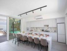 This luxury and brand new 5 bedroom, 3 storey villa is located in a prime, central Ayia Napa location, just a few minutes walk to Nissi Avenue and all its beaches and amenities. The villa is newly built and fully equipped with new and contemporary furniture and fittings to ensure a comfortable stay. As you enter the villa, you will find the spacious, and very modern open-plan living room, kitchen and dining area, with large patio doors leading to the garden and pool. The living room features a comfortable corner sofa, widescreen Smart TV with satellite channels and wi-fi connection. The dining area has a table and chairs to seat 10 people and the kitchen is fully equipped with all appliances and utensils needed for an enjoyable self-catering stay. One of the five bedrooms can be found on the ground floor with a double bed, and you will also find one of the bathrooms with shower and WC. Upstairs, you will find three of the bedrooms, one double and two twin bedrooms. The master bedroom has an en suite bathroom with shower and WC. All bedrooms are complete with wardrobes and bedside cabinets. The main family bathroom with shower and WC is also on this floor. Downstairs, on the lower ground floor level which is accessed from the living room, you will find the remaining bedroom with two single beds and access to the veranda. There is another bathroom on this floor with a shower and WC, and a communal area with a full sized football table and table tennis. Outside, the beautiful and sizeable garden offers a barbecue, work-top and sink area, outside shower, a generous-sized dining area with seating for 10 people, an extra seating area with comfortable sofas, sunloungers and the large, private pool, ideal for those hot days lazing in the Cyprus sun.There is full air-con and WI-FI throughout the villa. This stunning and elaborate villa, in an ideal central location is the ultimate choice for families or groups of friends looking for a peaceful, relaxing and luxurious break. Bedroom 1: 1 Double Bed with En-Suite Bathroom / Bedroom 2: 2 Single Bed / Bedroom 3: 2 Single Beds / Bedroom 4 (Ground Floor): 1 Double Bed / Bedroom 5 (Basement): 2 Single Beds. Mülkiyet tamamen çitle çevrili. Izgara için uygundur. Çamaşır makinesi sayesinde taşınacak daha az kıyafet bulacaksınız. Bir fırın mevcuttur.- Konaklama özelliklerinin özellikleri