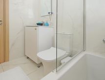 1 guest toilet. 1 family bathroom with bath tub. All bathrooms have washing basins. İçeri girin ve klimanın ferahlatıcı esintisini hissedin. Bir DVD oynatıcı mevcuttur.- Konaklama özelliklerinin özellikleri