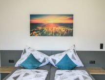 "Apartment Georg", 3 odalı daire 75 m2, alt kat. Aydınlık, çok zevkli dayalı döşeli: giriş. 2 adet çift kişilik oda. Amerikan mutfak (fırın, bulaşık makinesi, 4 cam seramik taban, kahve makinesi) ile 1 çift kişilik divan yatak. Terasa çıkışlı. 2 adet duş/WC. Yerden ısıtmalı. Teras mobilyası, şezlong 4 adet). Harika panoramik. Hizmetinize sunulan: Internet (Wireless LAN). Duş kabini canlandırıyor ve bir duş var. Ev ayrıca bir teras ile donatılmıştır. Bir bebek karyolası var.- tesisler