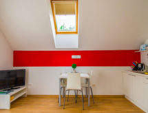 "Apartment Lori", 1 oda stüdyo 38 m2. Oturma/yatak odası ile 1 ikili yatak (1 180 cm, uzunluk 200 cm), kablolu TV (LCD ekran), klima. Balkona çıkışlı. Amerikan mutfak (2 cam seramik taban, mikro dalga fırın) ile yemek masası. Duş/WC. Hizmetinize sunulan: çamaşır makinesi. Internet (Wireless LAN). Balkon mevcuttur. Kapalı otoparkı var. Bir mikrodalga fırın mevcuttur.- tesisler