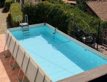 5 odalı Villa 115 m2 üstünde 2 kat. Konforlu ve zevkli dayalı döşeli: oturma /yemek odası, panoramik pencere ile 1 çift kişilik divan yatak, isveç ocağı ve klima. Yemek pişirme yeri (4 ocak, fırın, bulaşık makinesi, mikro dalga fırın, derin dondurucu, kahve makinesi) ile ayrı. WC. Terasa çıkışlı. Üst kat: (döner merdiven) oturma odası ile 1 çift kişilik divan yatak ve TV (LCD ekran), klima. Balkona çıkışlı. 1 çift kişilik oda ile TV (LCD ekran), klima. 1 oda ile 2 adet yatak ve klima. Duş/taharetlik/WC, banyo/duş/bide/tuvalet. Kalorifer, odun sobası, fanlı ısıtma. 01.12. 31.03. Balkon 15 m2, teras 40 m2 kısmen kapalı teras 25 m2, kapalı. Teras mobilyası, bahçede mangal, şezlong. Sınırlı, Deniz, Dağ ve Doğa manzaralı. Hizmetinize sunulan: çamaşır makinesi, ütü, cibinlik, çocuk yemek sandalyesi, çocuk yatağı, 2 yaş 'a kadar fön makinesi. Internet (Wireless LAN, ücretsiz). Park yeri (2). CIR:19083034C208320 Çitlerle çevrili arsa ile. Bir balkon var. Bir teras mevcuttur. Bir bulaşık makinesi mevcuttur. Özel bir havuz var. İnternet bağlantısı var.- tesisler