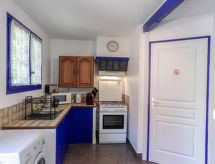 2 odalı ev 45 m2. Amaca uygun dayalı döşeli: oturma/yatak odası ile 1 divan (130 cm, uzunluk 190 cm), TV ve yabancı televizyon kanalları (LCD ekran). 1 oda ile 1 french bed (140 cm, uzunluk 190 cm). Mutfak girişte (3 ocak, fırın, mikro dalga fırın, kahve makinesi). Terasa çıkışlı. Duş/WC. Teras 15 m2. Teras mobilyası, bahçede mangal. Hizmetinize sunulan: çamaşır makinesi, ütü. Internet (Wireless LAN, ücretsiz). Park yeri (2). Dikkat: sigara içilmeyen ev. Maximum 1 pet/ dog allowed. Duman dedektörü. Hızlı bir şekilde kendiniz bir şeyler hazırlamak için bir mikrodalga fırın hazır. Bir fırın mevcuttur.- tesisler