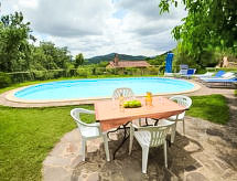 Kırsal konak "Ca' di Bacco", denizden yükseklik 525 m, çevrili kırlık alan. Yazlık ev'de 3 daire. 30 km ın merkezinde Cortona, yalnız yer, yeşillikler içinde. Kullanım için: bahçe 1 ha (çitle çevrili), yüzme havuz (12 6 m, 130 - 200 cm derin, Sezonluk kullanılabilirlik: 15.May. - 25.Sep.). Dış duş. Tek kişilik kullanım için: mangal. Evde: internet kullanımı. Girişten önce alışveriş servis olanağı. Giriş (3 km doğa yolu). Marketler 2 km, süper market 10 km, Restaurant 5 km. Yöredeki tanınmış göller kolay erişilebilir: Trasimeno 30 km. Lütfen dikkat: araç önerilir. Bu tesiste daha başka 1 ev kiralanabilir.Interior