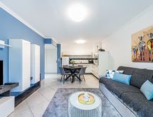 2 odalı daire 42 m2, zemin katta, güney batı cephesi. Çocuk için uygundur obje 4 Yetişkin. Güzel dayalı döşeli: oturma /yemek odası ile 1 divan (160 cm, uzunluk 200 cm), yemek masası ve TV (LCD ekran), klima. Terasa çıkışlı. 1 oda ile 1 french bed (160 cm, uzunluk 200 cm). Amerikan mutfak (bulaşık makinesi, 4 Endüksiyon ocak tablası, kahve makinesi, Kahve makinası için kapsül (Nespresso) ekstra). Duş, ayrı WC. Klima, şofben (200 Litre). Büyük teras 40 m2 güney bölgesi ve batı cephesi. Teras mobilyası, elektrikli gril, şezlong 3 adet). Bahçe manzaralı. Hizmetinize sunulan: çamaşır makinesi, ütü, fön makinesi. Internet (Wireless LAN, ücretsiz). Park yeri No. 2 (çitle çevrili, 1). Dikkat: duman dedektörü. Offer by a private individual according to Art. 155, IV of CGI. İkamet. Nesne bir asansör var. Çocuk havuzu var.- Konaklama özelliklerinin özellikleri