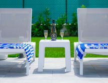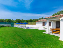 3 odalı ev 76 m2. Rahat dayalı döşeli: oturma /yemek odası ile 1 çift kişilik divan yatak (140 cm, uzunluk 200 cm), Uydu-TV (LCD ekran), klima. Terasa çıkışlı. 2 adet oda, her oda ile 1 french bed (180 cm, uzunluk 200 cm), duş/WC ve Uydu-TV (LCD ekran), klima. Amerikan mutfak (fırın, bulaşık makinesi, 4 cam seramik taban, mikro dalga fırın, derin dondurucu, kahve makinesi). Duş/WC. Teras 20 m2, kapalı. Teras mobilyası, bahçede mangal (mobil), şezlong. Havuz manzaralı. Hizmetinize sunulan: kasa, çocuk yemek sandalyesi, çocuk yatağı, fön makinesi. Internet (Wireless LAN, ücretsiz). 1 pet/ dog allowed. Köpeği bile burada hoş bir konuktur, sonuçta aileye aittir. Mülkiyet tamamen çitle çevrili. Bir teras mevcuttur. Özel bir havuz var.- tesisler