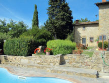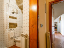 Çiftlik "Il Casellino", denizden yükseklik 460 m, üstünde 2 katlı, çevrili ağaçlar. Yazlık ev'de 4 daire. 5 km ın merkezinde Loro Ciuffenna, yalnız, sakin/sessiz yer, yeşillikler içinde. Kullanım için: arsa 200 ha, bahçe (çitle çevrili değil) ile çim ve ağaçlar, yüzme havuz kıvrımlı (8 4 m, Sezonluk kullanılabilirlik: 01.May. - 25.Sep.). Dış duş, mangal. Evde: çamaşır makinesi (birlikte kullanım için, ekstra). 600 m uzun/boyunca dik, dar giriş. Otopark (kapalı) arsada. Marketler 5 km, süper market 12 km, tren istasyonu "Montevarchi" 15 km. Yoldan yüyüyüş yolları mevcut 50 m. Gezilecek yerler: Firenze 60 km, Arezzo 40 km, Siena 60 km. Lütfen dikkat: araç önerilir. Köy ürünlerinin satışı yapılmaktadır. Mekan sahibi aynı yerde ikamet eder.Interior