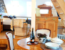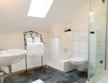 "Dachsuite", 1 oda daire 60 m2 üstünde 2 kat, çatı katında. Çocuk için uygundur obje 2 Yetişkin + 2. Konforlu dayalı döşeli: çatı tavan oturma/yatak odası 55 m2 ile 1 ikili yatak (180 cm, uzunluk 200 cm), Uydu-TV (LCD ekran). çatı tavan, açık galeri ile 2 adet yatak (90 cm, uzunluk 200 cm). Yemek pişirme yeri (4 ocak, fırın, bulaşık makinesi, mikro dalga fırın, kahve makinesi). Duş/WC. Balkon 25 m2. Balkon mobilyası, şezlong 2 adet). Hizmetinize sunulan: fön makinesi. Internet (Wireless LAN, ücretsiz). Dikkat: sigara içilmez daireler. Özel giriş, özel giriş, duman dedektörü. Bir balkon var. Bir bulaşık makinesi mevcuttur.- tesisler