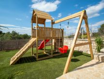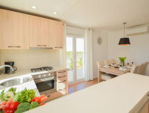 3 odalı ev 58 m2, güney bölgesi. Rahat dayalı döşeli: oturma /yemek odası ile 1 çift kişilik divan yatak (140 cm, uzunluk 200 cm), açık şömine ve TV (LCD ekran), klima. Terasa çıkışlı. 1 oda ile 1 french bed (160 cm, uzunluk 200 cm), TV (LCD ekran). Terasa çıkışlı. 1 oda 7 m2 ile 1 yatak (90 cm, uzunluk 200 cm). Amerikan mutfak (4 ocak, fırın, bulaşık makinesi, mikro dalga fırın, derin dondurucu, kahve makinesi). Duş/WC. Teras 30 m2. Teras mobilyası, şezlong. Havuz manzaralı. Hizmetinize sunulan: kasa, ütü, fön makinesi. Internet (Wireless LAN, ücretsiz). Barbekü için uygundur. Bir park yeri var. Özel bir havuzu var.- tesisler