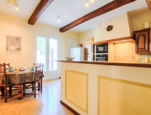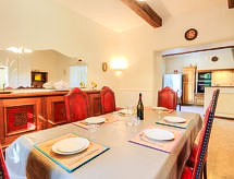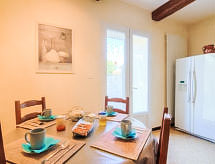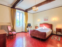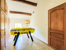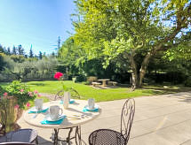 Althen les Paluds 12 km Carpentras: Mas "de la Roque", 19. yüzyıl den/dan. Mevkii, 400 m merkezden. Tek kişilik kullanım için: arsa 3'000 m2 (çitle çevrili) ile çiçekler ve ağaçlar, yüzme havuzu (12 5 m, 100 - 200 cm derin, Sezonluk kullanılabilirlik: 01.May. - 30.Sep.) ile içerden merdivenli. Yüzme havuzlu ev ile buzdolabı, duş, WC ve ocak, masa tenisi, Boccia, teras (80 m2), ateş yeri. Evde: merkezi ısıtma, klima sistemi. Otopark arsada. Carport. Marketler, Restaurant 400 m. Tenis 400 m. Gezilecek yerler: Avignon 18 km, Orange 25 km. Residans elektrikli kapı ile kapalıdır. Sporcular mevcut tenis kortunda eşleşebilir.Interior