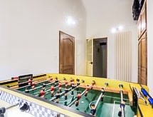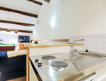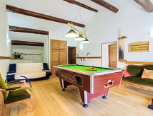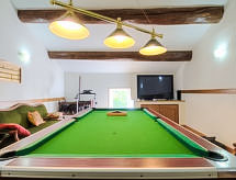 7 odalı ev 270 m2 üstünde 2 kat. Büyük giriş. Oturma /yemek odası 55 m2 ile TV (LCD ekran). Salon 50 m2 ile açık şömine, Uydu-TV ve DVD. Mutfak (4 ocak, fırın, bulaşık makinesi, mikro dalga fırın, derin dondurucu). Terasa çıkışlı. Banyo, ayrı WC, çift lavabo köşeli küvetli. Üst kat: 1 oda ile 1 yatak (120 cm), 1 french bed (1 160 cm), duş/WC. 2 adet oda, her oda ile 1 french bed (1 140 cm). 2. kat: oyun odası 55 m2 ile 1 çift kişilik divan yatak (1 140 cm, uzunluk 190 cm), TV ve klima. Yemek pişirme yeri (2 ocak, mikro dalga fırın). Duş/WC. Şezlong 9 adet). Hizmetinize sunulan: çamaşır makinesi, çocuk yemek sandalyesi, çocuk yatağı, 2 yaş 'a kadar. Internet (Wireless LAN, ücretsiz). Dikkat: duman dedektörü. Klima sistemi iyi bir oda sıcaklığı sağlar. Çünkü iyi hissetme faktörü önemli bir rol oynar ve bizim için önemlidir. Bir terası vardır. Barbekü için uygundur. Bir ateş çukuru var. Özel bir havuz mevcuttur. Özel çamaşır makinesinden daha bağımsızsınız. Kablosuz bir yerel alan ağı (WLAN) mevcuttur. Bir DVD oynatıcı mevcuttur. Bir Masa Tenisi masası mevcuttur.- Faaliyetler yakın