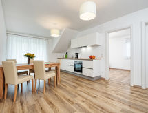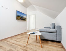 "Deutschbauer (FAK101)", 3 odalı daire 62 m2, çatı katında. Aydınlık, modern dayalı döşeli: çatı tavan oturma/yatak odası ile 1 çift kişilik divan yatak (1 140 cm, uzunluk 200 cm), yemek masası ve Uydu-TV. Balkona çıkışlı. 2 adet çatı tavan çift kişilik oda. Amerikan mutfak (fırın, bulaşık makinesi, 4 cam seramik taban, kahve makinesi). Duş/WC. Klima, yerden ısıtmalı. Balkon 3 m2. Balkon mobilyası. Hizmetinize sunulan: çocuk yemek sandalyesi, çocuk yatağı. Internet (Wireless LAN, ücretsiz). Dikkat: duman dedektörü. Bir yerde duş var. Sadece çabucak şampuanlanmış ve duş almış ve yeni bir tatil gününe çoktan başlamış olabilir.- tesisler