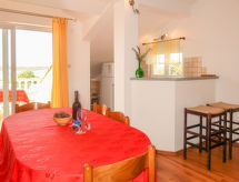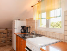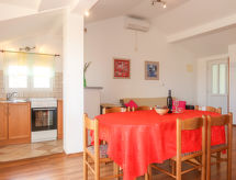 Üç aile evi "Dora", üstünde 3 katlı, çevrili ağaçlar. Mevkii, 1.5 km ın merkezinde Barbat, 6 km in merkezinde Rab, 17 km in merkezinde Lopar, yerleşim alanında, 200 m denizden. Kullanım için: arsa 1'300 m2, bahçe ile çim ve ağaçlar. Teras (70 m2), bahçe mobilyası, mangal. Evde: lobi TV ile internet kullanımı, çamaşır makinesi (ekstra) (birlikte kullanım için). Marketler 100 m, çakıl taşlı plaj 200 m. Lütfen dikkat: özel tekne park yeri (ekstra) talebe göre.Interior
