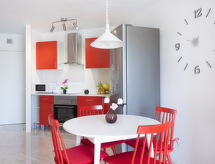 2 odalı daire 45 m2 'de/da 5. kat. 2022 yılında tam/bütün yenilenmiş/bakımı yapılmış, konforlu dayalı döşeli: oturma /yemek odası ile dijital tv. Terasa çıkışlı. 1 oda ile 2 adet yatak (90 cm, uzunluk 190 cm). Amerikan mutfak (fırın, 2 cam seramik taban, mikro dalga fırın, kahve makinesi). Duş/WC. Teras mobilyası. Sınırlı, Deniz manzaralı. Hizmetinize sunulan: çamaşır makinesi, ütü, çocuk yemek sandalyesi, çocuk yatağı, fön makinesi. Internet (Wireless LAN, ücretsiz). VV38-4-0095614 Ön kapıya asansör ile uygun. Bir havuzu var. Çocuk havuzu var.- tesisler