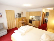 1 oda daire 26 m2, zemin katta. çok güzel ve rahat dayalı döşeli: oturma/yatak odası ile 1 ikili yatak, yemek masası ve Uydu-TV. Balkona çıkışlı. Yemek pişirme yeri (fırın, bulaşık makinesi, 4 cam seramik taban). Duş/WC. Balkon. Güzel, Dağ ve Doğa manzaralı. Hizmetinize sunulan: telefon, kasa, fön makinesi. Internet (Wireless LAN, ücretsiz). Dikkat: 1 pet/ dog allowed. Duman dedektörü. Tatil tesisinde yolcu asansörü vardır. Balkonu var. Kapalı yüzme havuzu mevcuttur. Isıtmalı bir havuz bulunmaktadır.- tesisler