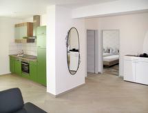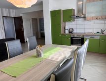 "Fuchs (DON161)", 3 odalı daire 80 m2, üst katta. Aydınlık, modern ve stilli dayalı döşeli: oturma/yatak odası ile 1 çift kişilik divan yatak, yemek masası ve kablolu TV. Balkona çıkışlı. 1 oda ile 1 ikili yatak ve duş/WC. 1 oda ile 1 adet ikili yatak. Amerikan mutfak (fırın, bulaşık makinesi, 4 cam seramik taban, kahve makinesi). Banyo/WC. Klima, yerden ısıtmalı. Taş zemin. Balkon. Balkon mobilyası, kiler. Hizmetinize sunulan: cibinlik. Internet (Wireless LAN, ücretsiz). Park yeri (1). Dikkat: sigara içilmez daireler. Duman dedektörü. Balkonu var.- Konaklama özelliklerinin özellikleri