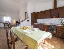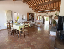 Rustik, konforlu villa "Gaia", denizden yükseklik 490 m, bağımsız, çevrili ağaçlar ve kırlık alan. 4 km ın merkezinde Seggiano, yalnız, güneşli yer tepede. Tek kişilik kullanım için: Park 1 ha, dinlenmek için güzel bir bahçe, yüzme havuzu (12 6 m, 140 - 250 cm derin, Sezonluk kullanılabilirlik: 01.Jun. - 15.Sep.). Dış duş, bahçe mobilyası, mangal. Kadar ısınma ücreti gelindiğinde ödenir, 01.11. 15.04.. Giriş (100 m doğa yolu). Otopark evin orda. Kumsal "Marina Di Alberese" 74 km, park "Monte Amiata" 20 km, termal havuz "Bagni San Filippo" 24 km. Gezilecek yerler: Castel Del piano 11 km, Vivo d'Orcia 17 km, Bagno vignoni 20 km, Montalcino 25 km, Pienza 32 km, Siena 62 km. Lütfen dikkat: araç önerilir.Interior