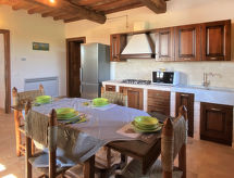 Tatil tesisi "Podere la Querciola", üstünde 2 katlı, 2021 yılında yenilenmiş, çevrili çimen ve kırlık alan. Mevkii Casino di Terra, 11 km ın merkezinde Guardistallo, 14 km in merkezinde Cecina, yalnız, sakin/sessiz yer, 16 km denizden. Kullanım için: arsa ile bitki ve ağaçlar, yüzme havuz (6 11 m, 150 cm derin, Sezonluk kullanılabilirlik: 01.May. - 15.Oct.). çocuk havuzu, dış duş, hot tub, bahçe mobilyası, mangal. Tesiste: Wireless LAN, çamaşır makinesi (ekstra). Giriş (700 m doğa yolu). Otopark. Marketler 11 km, Restaurant 2 km, Bar 2 km, kumsal "Marina di Cecina" 16 km. Gezilecek yerler: Volterra 24 km, Pisa 70 km, Firenze 100 m.Interior