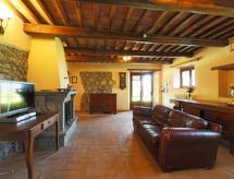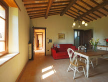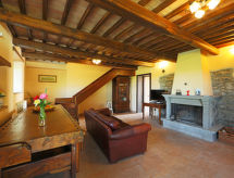Rustik, konforlu kırsal konak " Gemma", denizden yükseklik 600 m, bağımsız, çevrili ağaçlar ve kırlık alan. 12 km ın merkezinde Orvieto, yörenin dışında. Benano, yeşillikler içinde. Tek kişilik kullanım için: arsa 8 ha, dinlenmek için güzel bir bahçe, yüzme havuzu (14 7 m, 170 cm derin, Sezonluk kullanılabilirlik: 01.Jun. - 30.Sep.) ile içerden merdivenli. Dış duş, bahçe mobilyası, mangal. Giriş (150 m doğa yolu). Otopark evin orda. Marketler 2 km, süper market 10 km, Restaurant 2 km, termal havuz "Dei Papi" 44 km, göl "Bolsena" 23 km. Gezilecek yerler: Grotte Di Castro 17 km, Civita Di Bagnoregio 25 km, Capodimonte 32 km, Pitigliano 36 km, San Casciano Dei Bagni 38 km, Viterbo 44 km. Lütfen dikkat: araç önerilir. Genç grupları sadece sorulduktan sonra. Residans elektrikli kapı ile kapalıdır.Interior
