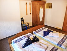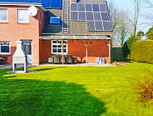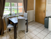 4 odalı daire 120 m2, zemin katta. Rahat dayalı döşeli: oturma /yemek odası 32 m2 ile Uydu-TV (LCD ekran). 1 oda 14 m2 ile 1 ikili yatak (2 90 cm, uzunluk 200 cm), duş/WC ve Uydu-TV (LCD ekran). 1 oda 13 m2 ile 1 ikili yatak (2 90 cm, uzunluk 200 cm). 1 oda 14 m2 ile 3 adet yatak (90 cm, uzunluk 200 cm). Büyük mutfak (fırın, bulaşık makinesi, 4 cam seramik taban, mikro dalga fırın, derin dondurucu, kahve makinesi) ile yemek masası. Duş/WC. Teras kapalı. Teras mobilyası, bahçede mangal, şezlong 2 adet). Hizmetinize sunulan: çamaşır makinesi. Internet (Wireless LAN, ücretsiz). Dikkat: sigara içilmez daireler. Maximum 2 pets/ dogs allowed. Duman dedektörü. Köpek ya da kedi ile tatil için. Evcil hayvan kabul edilir.- tesisler