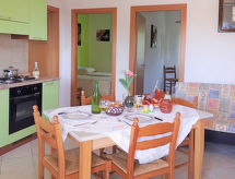 3 odalı daire 50 m2. Basit ve amaca uygun dayalı döşeli: oturma /yemek odası ile 1 çift kişilik divan yatak ve TV. 1 çift kişilik oda. 1 oda ile 2 adet yatak. Yemek pişirme yeri (4 ocak, fırın, derin dondurucu). Duş/taharetlik/WC. Balkon ya da, bahçe oturma yeri. Balkon mobilyası. Park yeri No. 1. Ailelere uygun. 1 small pet/ dog allowed. Yararlı bilgiler için lütfen resepsiyon görevlisine danışın. Bu tatil kompleksi içinde doğrudan bir restorandır. Tatiliniz İtalya 'da yarım pansiyon ile. Kahvaltı siparişi burada istenildiği zaman mümkündür. Çocuklar oyun alanında, buharlarını bırakabilirler. Bir sundurma var. Hava çalmıyorsa, bir TV de mevcuttur. Taze keten mevcuttur.- tesisler