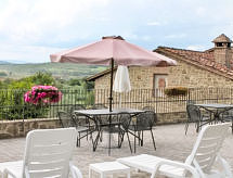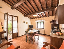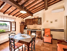 Kırsal konak "Casa Graziani". Residence'te 3 daire. Residence'te 9 daire. Münferit köycü evi Schiacciato, 13 km ın merkezinde Città della Pieve, 16 km in merkezinde Cetona, 46 km in merkezinde Perugia, 10 km gölden/denizden, yeşillikler içinde. Kullanım için: arsa 4'000 m2 (çitle çevrili), bakımlı bahçe ile çim ve ağaçlar, yüzme havuz (16 8 m, 120 - 180 cm derin, Sezonluk kullanılabilirlik: 01.May. - 30.Sep.). Masa tenisi, ateş yeri, çocuk parkı. Evde: sauna (ekstra). Fitness salonu, langırt, bisiklet temin edebilirsiniz. Otopark arsada. Süper market 3 km, tren istasyonu "Chiusi Scalo" 7 km. Golf sahası 8 km. Fitness için fırsat var.Interior