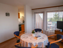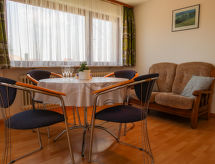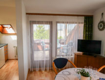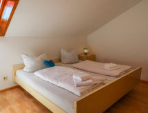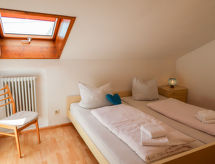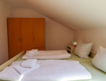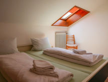 3 odalı daire 57 m2, çatı katında. Kısmen kesik, basit dayalı döşeli: oturma /yemek odası ile Uydu-TV ve Radio. Balkona çıkışlı. 2 adet oda, her oda ile 2 adet yatak (90 cm, uzunluk 200 cm), 1 ikili yatak (2 100 cm, uzunluk 200 cm). Yemek pişirme yeri (fırın, kahve makinesi). Banyo/WC. Küçük balkon 6 m2. Balkon mobilyası. Hizmetinize sunulan: Internet (Wireless LAN, ücretsiz). Dikkat: sigara içilmez daireler. Evde banyo. Ne yazık ki, bu konaklama yerinde sigara içilmesine izin verilmemektedir. İnternet bağlantısı var.- tesisler