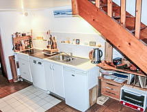 2 odalı daire 50 m2 üstünde 2 kat, zemin katta. Amaca uygun ve güzel dayalı döşeli: oturma /yemek odası ile 1 çek yat (2 kişi. 2 x 90 cm, uzunluk 190 cm). Terasa çıkışlı. Amerikan mutfak (fırın, bulaşık makinesi, 4 Endüksiyon ocak tablası, mikro dalga fırın, kahve makinesi). Üst kat: galeri ile 1 french bed (1 140 cm, uzunluk 190 cm). Birbirine bağlı oda ile 2 adet yatak (90 cm, uzunluk 190 cm). Duş, ayrı WC. Gazlı ısıtma. Büyük teras 20 m2 batı cephesi. Teras mobilyası, şezlong 2 adet). Harika deniz manzaralı. Hizmetinize sunulan: çamaşır makinesi, çamaşır kurutucusu, ütü, fön makinesi. Internet (Wireless LAN, ücretsiz). Dikkat: maximum 1 pet/ dog allowed. Duman dedektörü. 64249000045FC İkamet. Bu, köpeğinizin kabul edildiği bir tatil. Güzel deniz manzaraları sunar. Özel çamaşır makinesinden daha bağımsızsınız. Kablosuz bir LAN (kablosuz yerel alan ağı) mevcuttur. Evde ayrıca bir elbise kurutucusu bulunur.- Konaklama özelliklerinin özellikleri